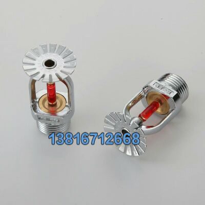 該產品是由玻璃球噴頭、螺套座、外罩座、外罩蓋組成。噴頭和螺套座一起安裝在管網的管路上,再安裝外罩。外罩座和外罩蓋由易熔合金焊接成一體。當火災發生時,環境溫度升高,達到易熔合金的熔點時,外罩蓋自動脫落,隨著溫度的繼續升高,罩內的噴頭玻璃球因為溫度敏感液體膨脹而破碎,從而開啟噴頭自動噴水。